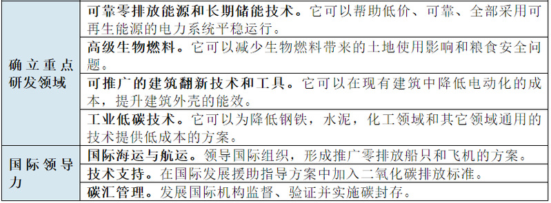 表2. 中美在碳中和上潜在的协同工作领域