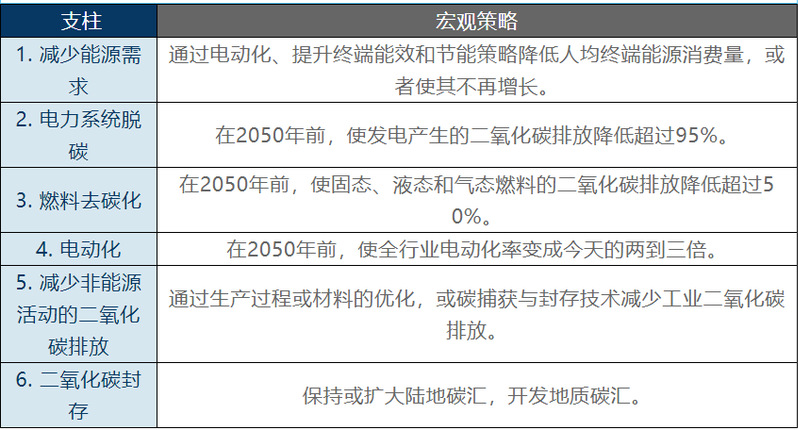 表1 各支柱实现碳中和的宏观策略