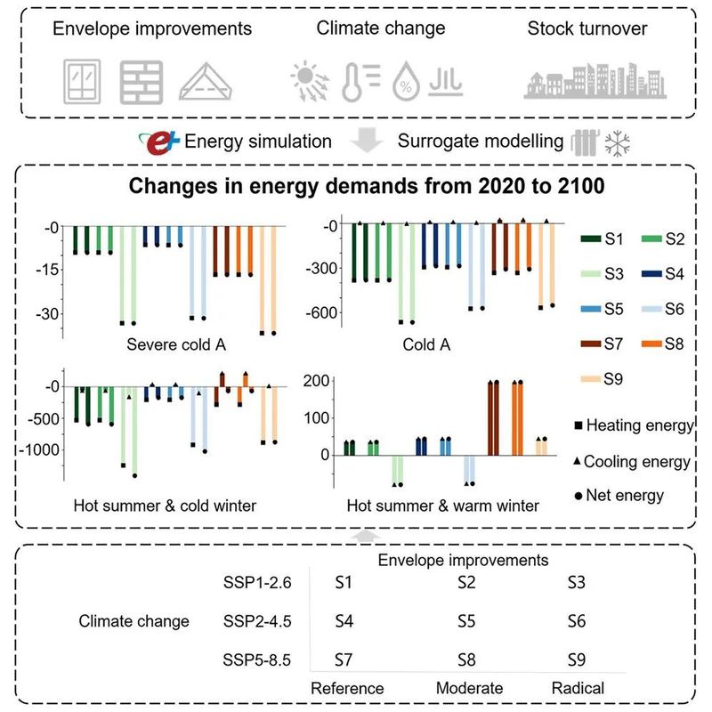 全球建筑行业约占最终能源消耗的30%,这使其成为气候变化减缓和适应的关键领域。近年来,国际社会对建筑节能改造措施(如更新围护结构、老旧建筑改造、电气化及燃料替代)的关注日益提升。但其节能潜力因建筑存量特征与气候条件的复杂相互作用而存在不确定性。在此,来自南京大学环境科学与工程学院的曹植教授课题组基于精细时空分辨率的物理机制建筑能耗模型,覆盖全国1677个地级及以下城市,系统评估了建筑围护结构性能提升与气候变化对中国住房能耗的综合影响。研究发现,围护结构改造在不同地区缓解气候变化对住房能耗影响的效果存在差异。这表明在部分气候适应能力较弱的地区,需强化能源供应系统应对气候变化的适应能力,并探索因地制宜的替代节能策略。